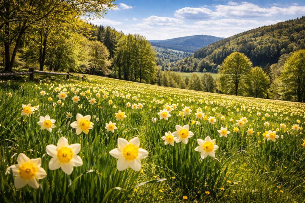 Jedes Frühjahr verwandeln tausende wilde Narzissen die Täler bei Monschau-Höfen in ein gelb blühendes Naturmeer. Gut ausgeschilderte Rundwege führen durch Wiesen und Bachlandschaften, besonders eindrucksvoll zur Blütezeit im April. Ruhiges Naturerlebnis, ideal zum Spazieren und Fotografieren.