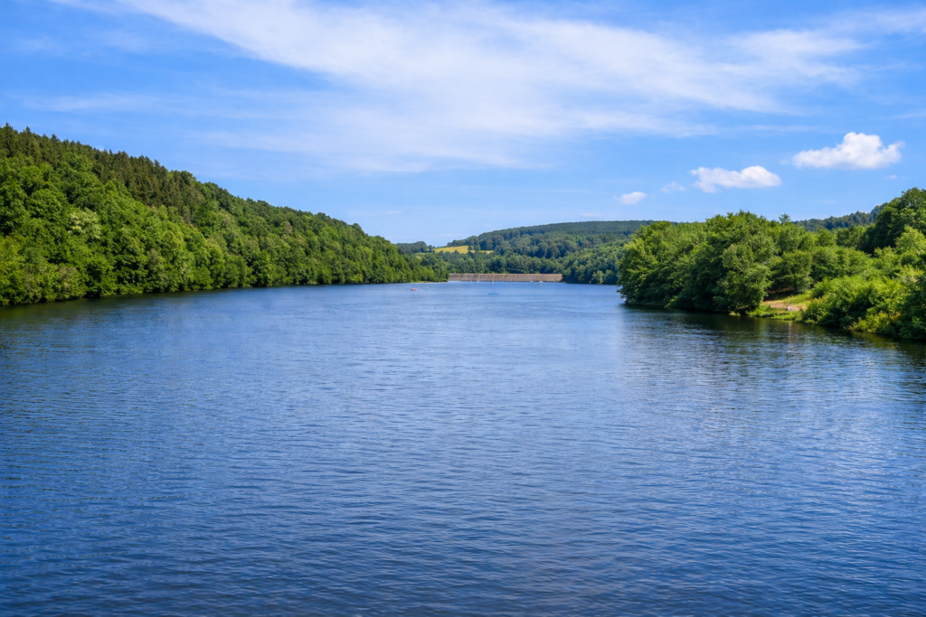 Aufgestaute Talsperre mit Rundweg, Liegewiesen und Tretbootverleih im Sommer. Ruhige Atmosphäre, ideal zum Spazierengehen, Abschalten oder für einen Badetag an warmen Tagen. Die Wege sind einfach und auch mit Kindern gut machbar.