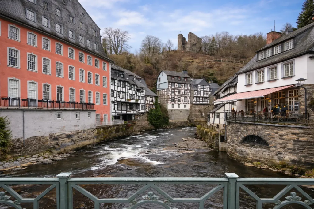 Historische Fachwerkhäuser entlang der Rur, enge Gassen und viele kleine Geschäfte prägen das Ortsbild. Besonders am Abend wirkt der Ort ruhig und stimmungsvoll beleuchtet. Zahlreiche Cafés und Restaurants laden zu einer Pause beim Spaziergang durch den Ortskern ein.